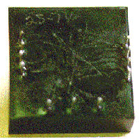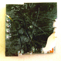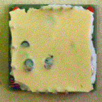 Shown here is the module with some of the silicone rubber removed along the edges. The hard epoxy layer can now be crackeled into several small sections using side cutters. |